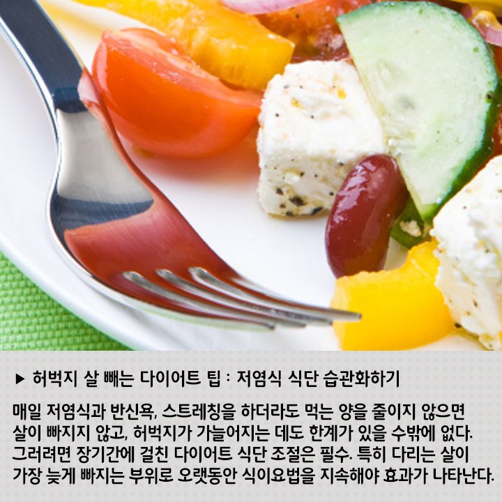 허벅지 살 빼는 다이어트 팁 : 저염식 식단 습관화하기