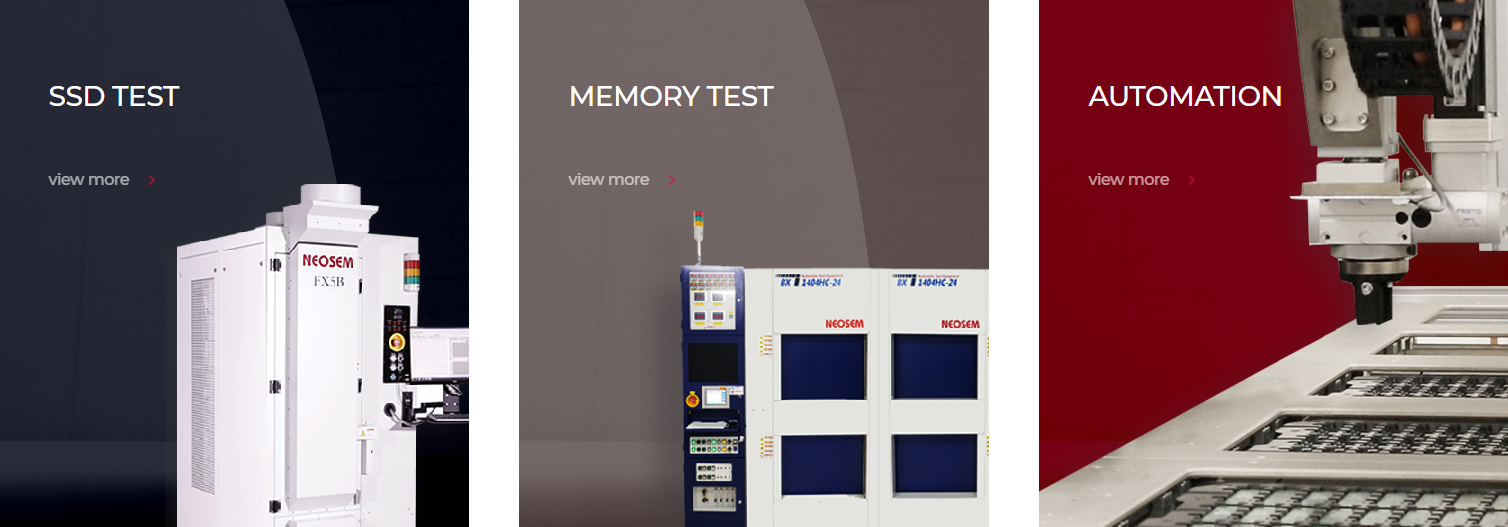 SSD와 DRAM Module Test 자동화 장비와 LED Aging 장비 등 새로운 영역으로 제품군을 다각화하고 있습니다.